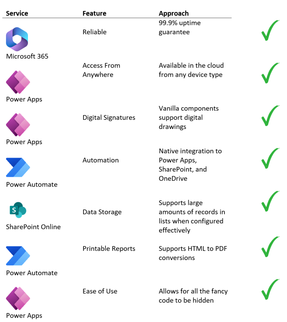 Therefore, the Microsoft 365 platform-based solution needed to provide the following features: